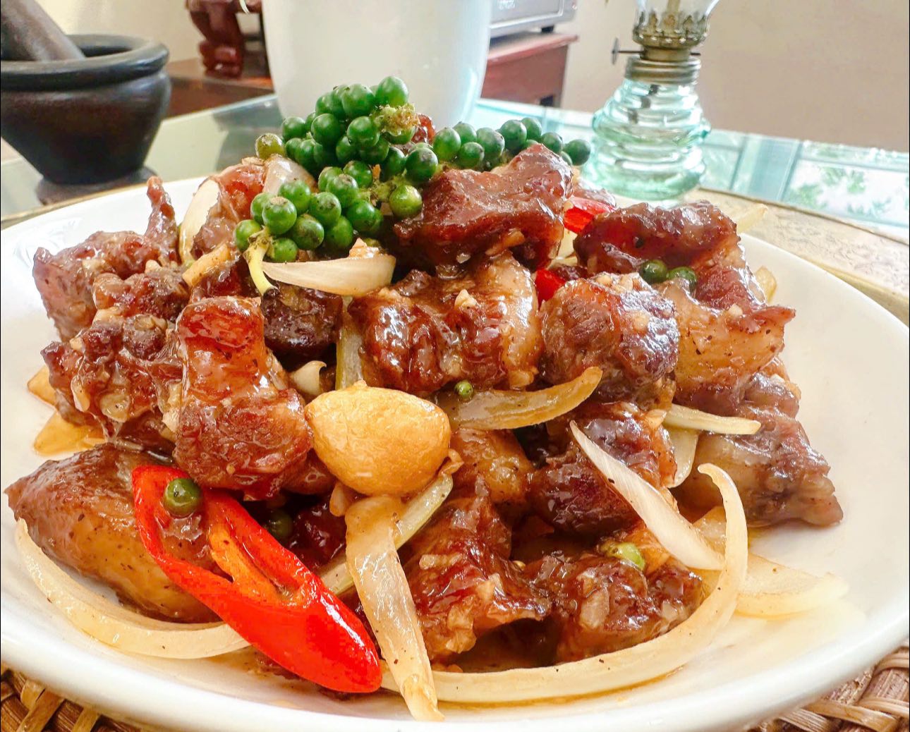 Tỏi cháy hoàn hảo không chỉ là phụ liệu, mà còn là yếu tố giúp món bò có độ thơm đặc trưng – mùi tỏi hòa quyện với vị bò, tạo nên tầng hương phức hợp, khiến người thưởng thức khó cưỡng lại.