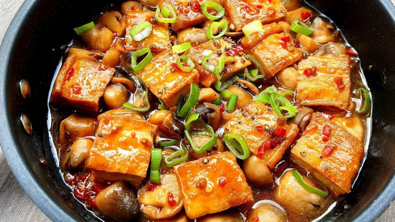 Khi nồi kho cạn bớt, nước sánh lại, đậu hũ ngả sang màu nâu vàng, trứng ánh lên lớp nước sốt óng ánh – đó là lúc món ăn đạt tới độ hoàn hảo. Múc ra đĩa, rắc thêm ít tiêu xay và vài lát ớt đỏ, món ăn trở nên vừa dân dã vừa hấp dẫn.