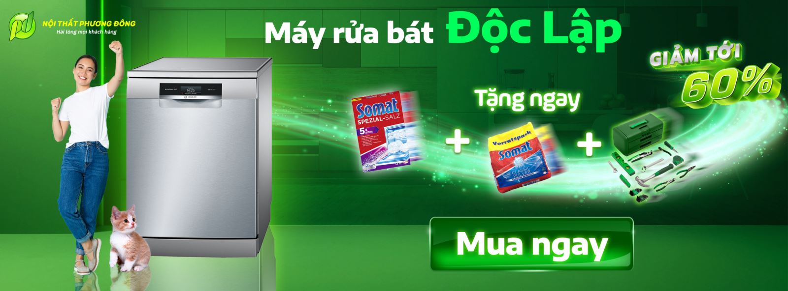 Máy rửa bát độc lập là loại máy rửa bát thiết kế đa năng vừa đặt được độc lập (ngoài tủ bếp) hoặc có thể đặt âm bên trong tủ bếp. Do đó, thích hợp với cả không gian tủ bếp cũ và mới đặc biệt có thể lắp đặt ở bất cứ vị trí nào trong nhà. Sản phẩm có các loại từ 6 bộ, 8 bộ, 12->15 bộ với rất nhiều tính năng rửa thông minh, sấy diệt khuẩn, sấy Zeolith tiết kiệm điện nước tối đa.